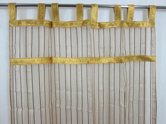 Handmade Sari Curtain Panels – Bohemian Tab Top Window Drapes in Recycled Silk & Vintage Textiles