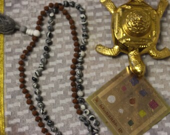 9 planet Altar, Evil Eye Prayer Beads, Yoga Mala, Sacred Geometry, Mindful living wITH Meru YAntra on Tortoise
